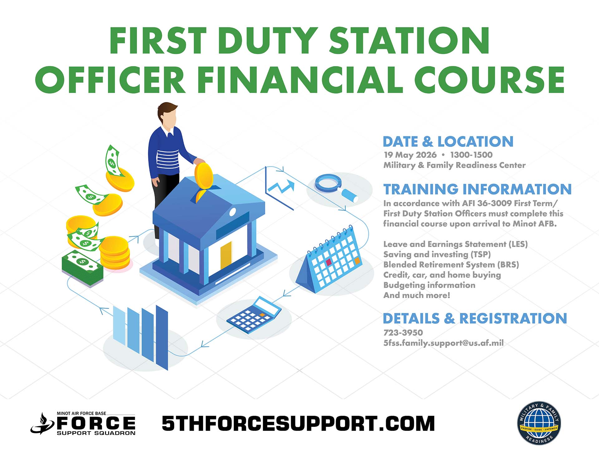 In accordance with AFI 36-3009 First Term/First Duty Station Officers must complete this financial course upon arrival to Minot AFB.